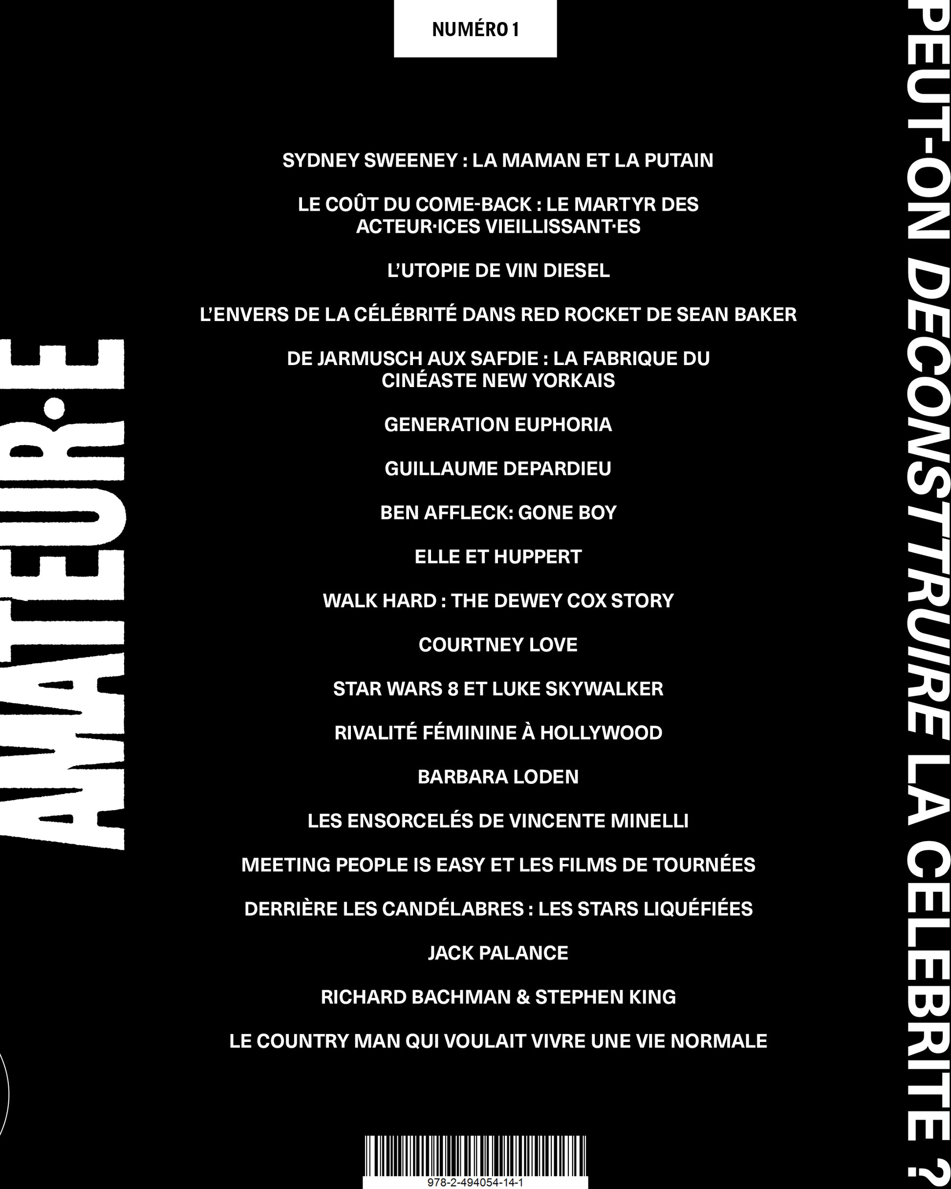 Au travers de cette interrogation, nous avons tenté d’ausculter la construction de nos obsessions et fictions de spectateur·ices, fans de cinéma mais aussi de penser certaines mutations à l'œuvre de la première moitié du XXème siècle à nos jours. On y explore des profils d’acteur·ices, de réalisateur·ices, des micro-genres, des thématiques et des récits médiatiques. Dans le prolongement du territoire défini par le numéro zéro de la revue, les articles tentent d’apporter des réponses et des points de vues, avec une subjectivité forte, des réflexions personnelles et un plaisir de digging et de partage. On y oscille souvent entre la non-fiction, la critique culturelle à la première personne et la culture zine.