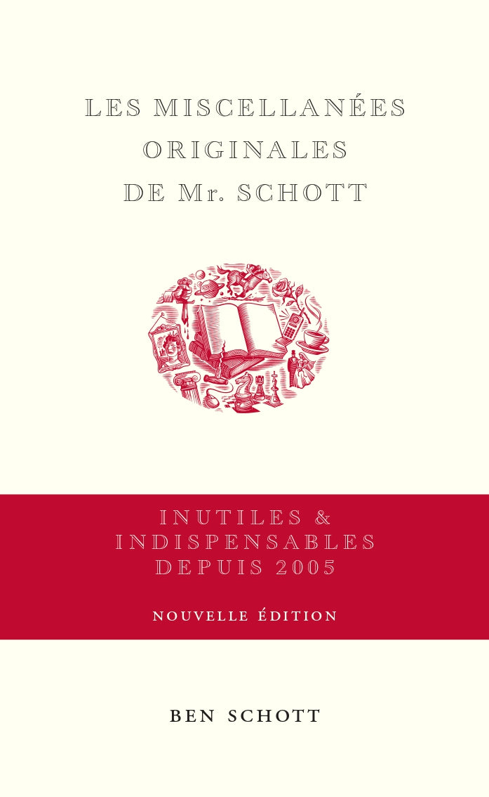 Les Miscellanées de Mr. Schott sont un ouvrage sans équivalent. À tel point unique qu’il est impossible à définir. Encyclopédie ? Dictionnaire ? Almanach ? Anthologie ? Vade-mecum ? Tout cela, et, bien sûr, beaucoup plus. Recueil de futilités pas toujours futiles, Les Miscellanées de Mr. Schott ne se veulent ni exhaustives, ni définitives, ni même utiles. En revanche, elles se veulent essentielles. On peut, à la rigueur, vivre sans ce livre mais ce serait là une tentative bien étrange et bien téméraire. Qu’on en juge. Quel autre ouvrage peut se targuer d’offrir dans sa table des matières la longueur des lacets de chaussures, le langage des signes, la liste des sept péchés capitaux ? Dans quel autre ouvrage trouvera-t-on réunis, l’histoire de la taxe sur les chapeaux, la liste des morts violentes dans l’histoire du rock et celle des insultes utilisées par Shakespeare dans ses pièces ? Où donc, si ce n’est dans les Miscellanées, pourra-t-on trouver la liste des différents modes opératoires des crimes élucidés par Mrs Marple ou des fournisseurs officiels de la reine d’Angleterre ? On y trouve aussi le nom et la composition des différentes sortes de sushis, celui de toutes les figures qui apparaissent sur la pochette de Sgt Pepper’s, les 100 premières décimales du nombre pi et la composition exacte du Big Mac. On l’aura compris, Les Miscellanées de Mr. Schott sont aussi réjouissantes qu’indispensables : elles offrent la quintessence de l’esprit et de l’humour anglais. Le plus fort peut-être, c’est qu’au bout du compte, l’ouvrage se révèle effectivement pratique: “un couteau suisse en forme de livre”.